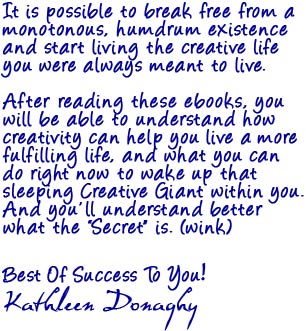 For a Limited Time, you can pick up at no charge The Art of Being Creative, as well as a special edition of Before The Secret. Just fill in the form on the right, and check your email.